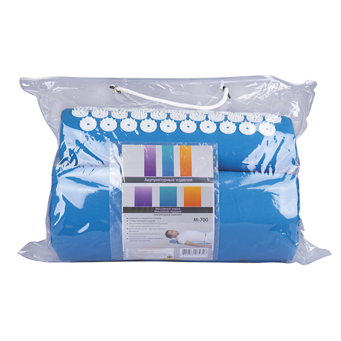 - в комплект входят акупунктурные массажные изделия: массажный коврик и массажная подушка
