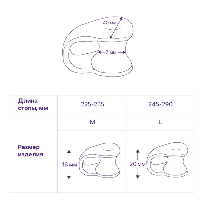 • кольцо на первый палец стопы обеспечивает оптимальное положение перегородки и препятствует соскальзыванию изделия при ходьбе