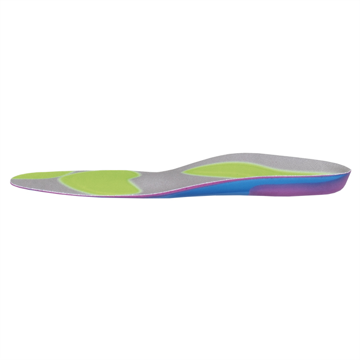 - зоны из более мягкого пенополиуретана разгружают области плюснефаланговых суставов, пятку, плантарную фасцию и первый палец стопы